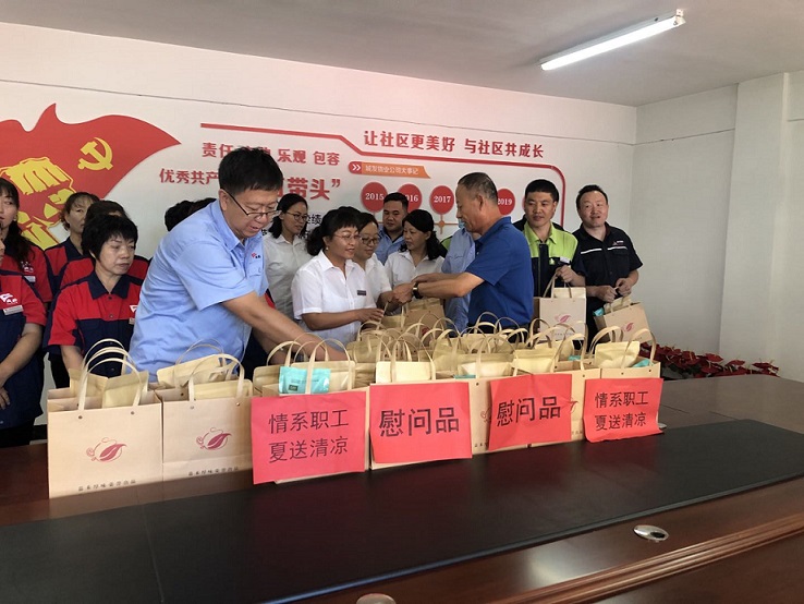 8月4日上午,公司工會在城發(fā)物業(yè)公司所服務(wù)的惠新苑、祥和苑、金城小區(qū)和橋靠分公司開展了送清涼慰問活動(dòng)。慰問組一行給堅(jiān)守工作崗位的物業(yè)職工送去茶葉、冰糖和綠豆,帶上了公司的關(guān)懷和慰問。