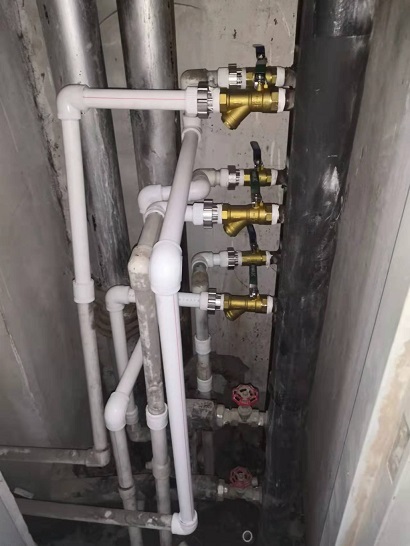 世貿(mào)金鉆屬于公寓式建筑,總住戶795戶,供暖面積約7萬多平,分為A、B、C座高層公寓,高中低壓三區(qū),二次網(wǎng)整體改造工程于7月30日開工,施工范圍從A、C區(qū)公寓的3層施工至28層,B區(qū)公寓3層至8層,每層有10個(gè)管道井,合計(jì)更換各類型號(hào)無縫管約4800米,過濾器1231套,絲扣銅球閥1244個(gè)。