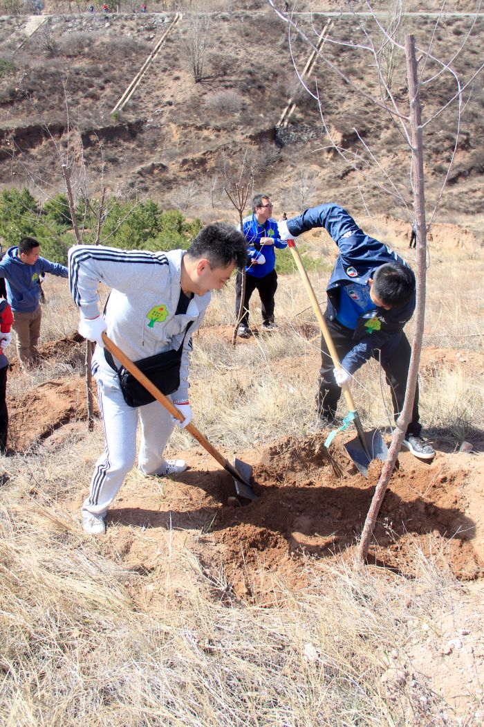 活動現(xiàn)場,公司團員青年在團委副書記郭振宇的帶領(lǐng)下,有序的加入到植樹活動的行列中,植樹現(xiàn)場一派熱火朝天,大家干勁十足,配合默契,三人一隊,五人一組,忙的不亦樂乎。在綠化技術(shù)人員的指導下,大家分工協(xié)作,有的挖坑,有的扶苗,有的培土到處都是忙碌的身影。大家不顧鞋褲上的泥土,一起揮鍬揚土,把一棵棵樹苗穩(wěn)穩(wěn)地栽好,并精心地把土踩實,為它們澆灌生命之水,經(jīng)過一個半小時的辛勤勞動,共栽植30余棵山桃樹,大家用自己的行動和汗水把青年林裝點得更加生機盎然。