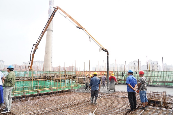 在三合村熱源廠廠區(qū),機器轟鳴,一臺大型吊車正在吊裝混凝土,幾十名工人們正揮汗如雨地進行耐火磚砌筑、鋼筋切割、地基澆筑,工地上一派熱火朝天的施工景象,各項工序井然有序進行中。